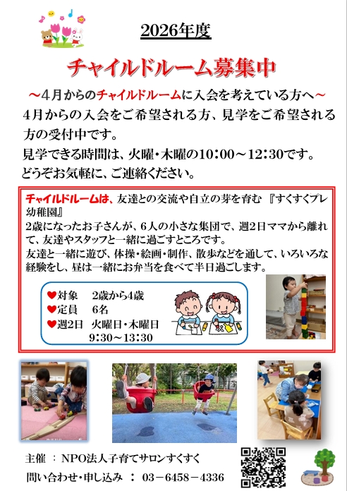 2026年度 チャイルドルーム(プレ幼児教室)募集中!
